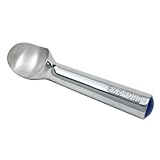 This original Zeroll high-lustre aluminum scoop is comfortable in the right or left hand and won't tire the wrists.It rolls ice cream smoothly into a ball and releases instantly into cone or dish.Not dishwasher safe.