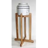 Top quality 2.5 gallon porcelain crock for dispensing water (or any of your favorite beverages). The crock is creme with two blue stripes. Made from 100% lead free vitrified porcelain. It measures 10 inches in height with a 10 inch bottom diameter. The crock has a 2-3 gallon water reservoir and will easily support a 5 gallon water bottle. This combo will look great in your kitchen or in the den. The stand is made of hard wood. This is also a great way to serve your favorite beverage at parties or in your back yard! This set includes the crock, stand, a Tomlinson lever faucet and a plastic protection ring. Bottle not included.